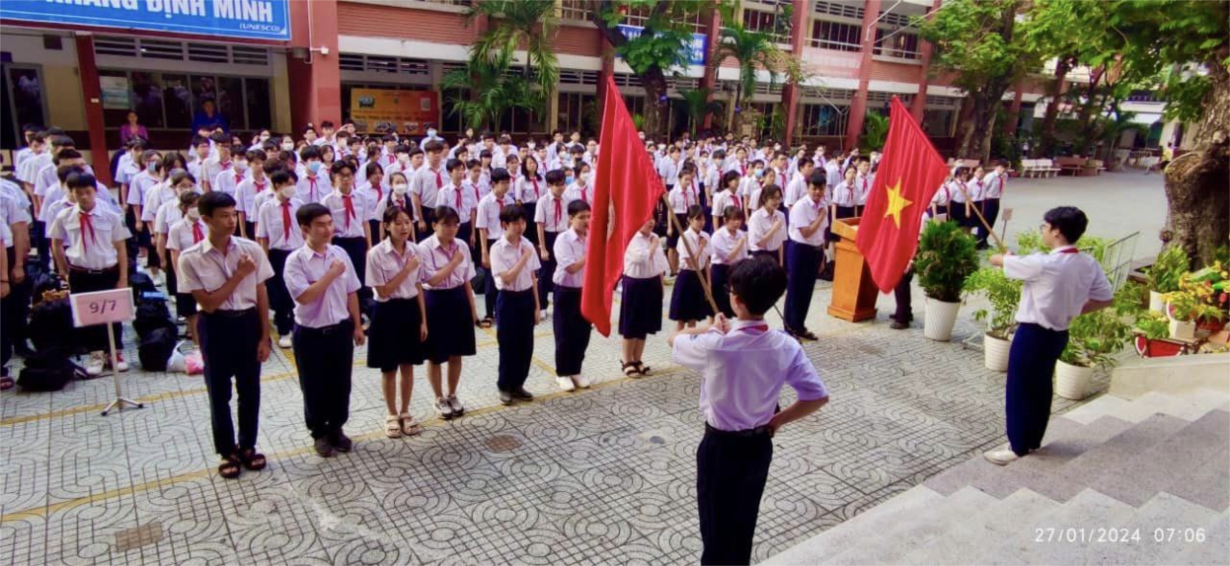 Sáng ngày 27/01/2024, tại trường THCS Hoàng Văn Thụ, Chi đoàn giáo viên trường đã phối hợp Liên đội trường tổ chức Lễ kết nạp Đoàn viên mới - Đợt 2 cho 11 Đội viên trưởng thành, đến từ 7 Chi đội, nhân dịp chào mừng kỉ niệm 54 năm ngày tổ chức Đoàn vinh dự được mang tên Chủ tịch Hồ Chí Minh (30/01/1970 – 30/01/2024).