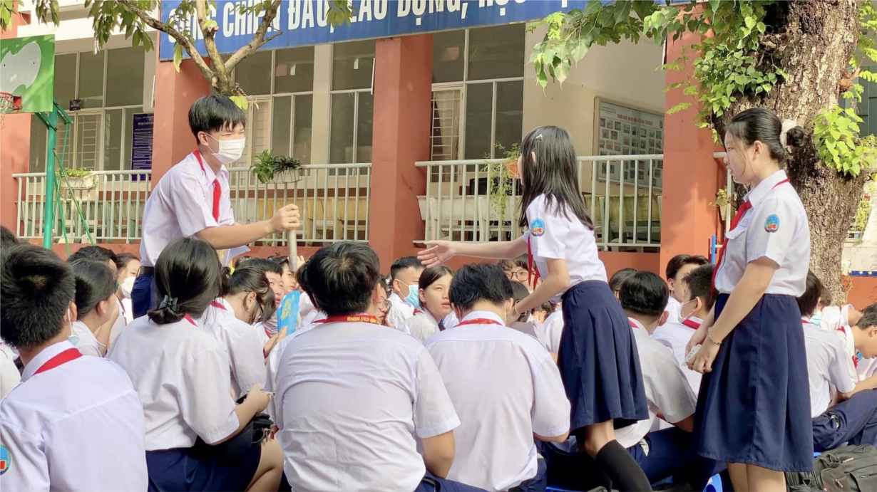 Để kết thúc câu chuyện, tập thể lớp 8/5 đã mang đến các câu hỏi tìm hiểu về xây dựng trường thân thiện và truyền thống TÔN SƯ TRỌNG ĐẠO trong nhà trường, mang đến bầu không khí vui tươi, sôi nổi và hấp dẫn khắp sân trường.